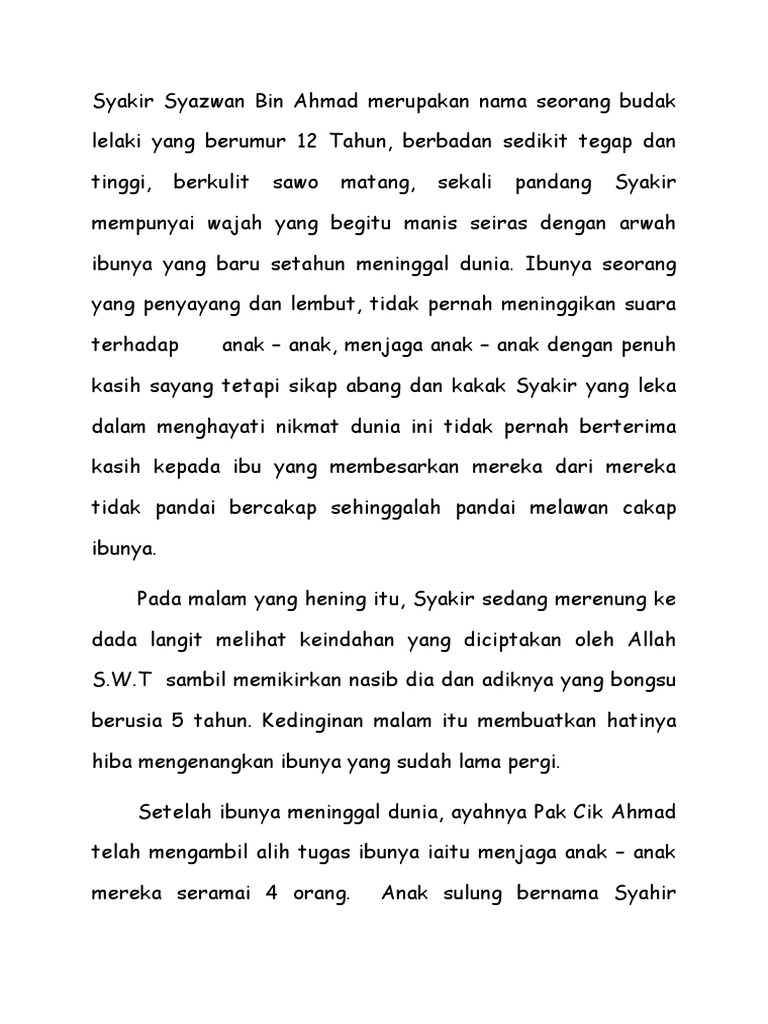 153 Aktiviti sebegini menunjukkan sikap prihatin dan kasih sayang sesama masyarakat. 163 Membaca AKTIVITI Anak Kampung Sira Menuju Cita-cita 1. Contoh Karangan Cerpen Bertemakan Kasih Sayang By Da_Jillian447 02 Jun 2022 Post a Comment Terangkan maksud kosa kata dan Hendak seribu daya tak hendak seribu ungkapan menarik yang terdapat dalih pesan Tok Bati.